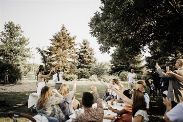 Wedding reception on the east lawn of the Stone House with photo courtesy of Jaimie Johnson Photography